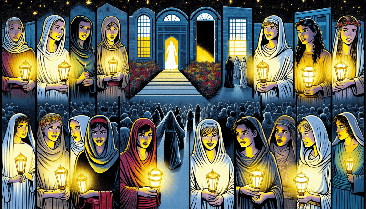 This parable in Matthew 25:1-13 is a prophecy about two groups of people awaiting Jesus’ return: those who are prepared (wise virgins) and those who are not (foolish virgins). The key difference is the amount of oil they possess, symbolizing the depth of their faith and understanding of God’s word.